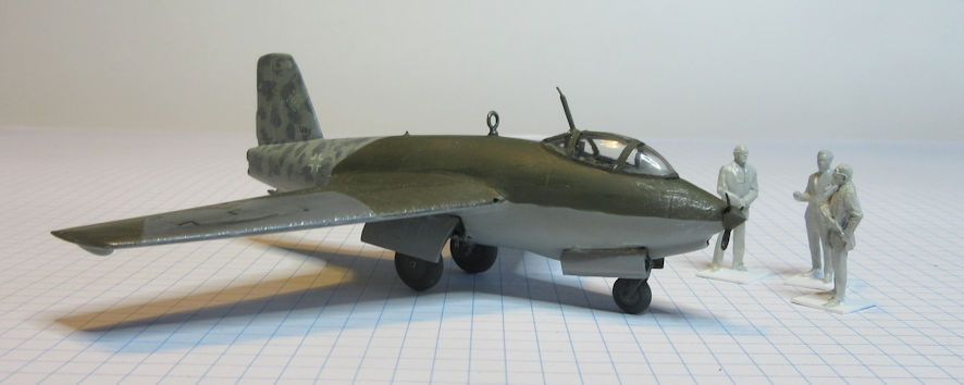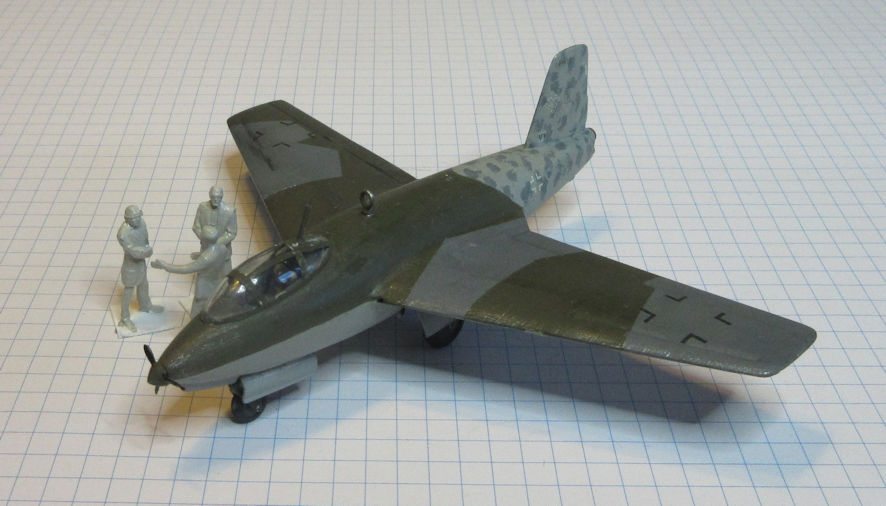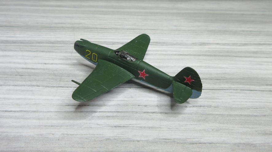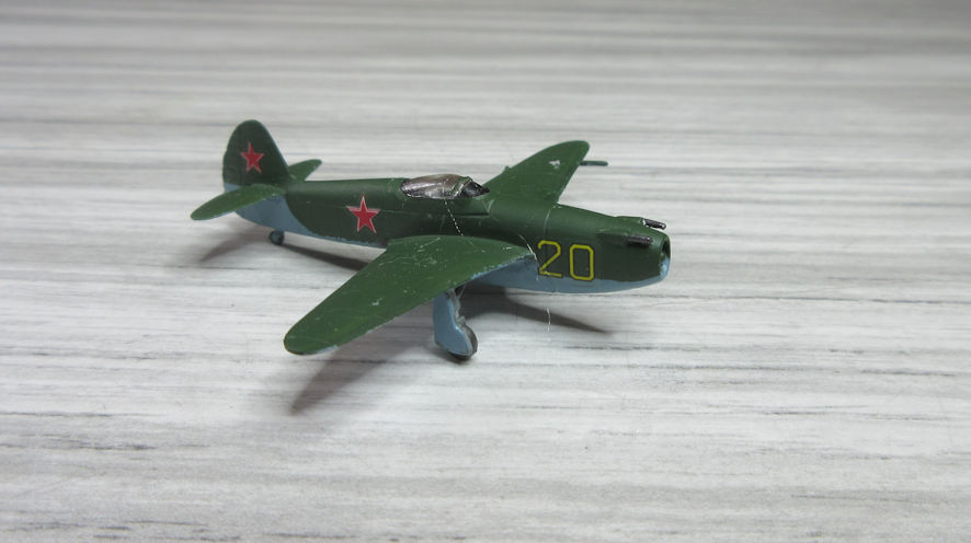 Here is one of those little Anigrand 1/144 bonus kits, this time a model that looks something like a Yak-15. I made it as part of my determination to rid myself of these little bugs, some have ended up in the bin as being not worth the trouble but others don’t look too bad if you’re half blind and your spectacles need cleaning. Still, I like them because they don’t take up much space and they give a sense of scale to bigger aeroplanes like Boeing 747s. The only part of this kit I really wish I’d paid more attention to was the cannons in the nose which are far too prominent, but it’s too late now. I tried out one of the sets of AK Real Color acrylic lacquer for this one but didn’t like the green that came in the set and substituted something a bit darker for the top-side green.