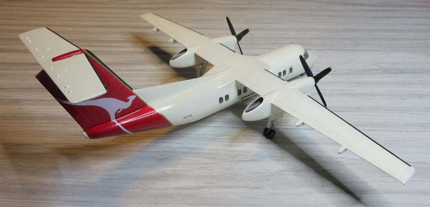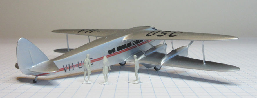 This little Arctic Decals 1/144 kit of the deHavilland DH-86 had been hanging around my work bench for the past year because I couldn’t work out how to make the decals for it. In the second half of the 1930s several Australian airlines brought this airliner into Australia, in particular Holymans Airways used them in services on Australia’s main domestic routes and Qantas Empire Airways used them on an international service between Singapore and Brisbane. I managed to make the decals for the Holymans version but could not make the Qantas decals. Finally I mentioned this problem to the well known local modeller, Wally, and he said he’d have a go. He’d made the decals for me in a couple of days and here the model is, finally, completed. It is not one of the most accurate 1/144 airliner model, but it’s better than nothing. Thanks Wal.