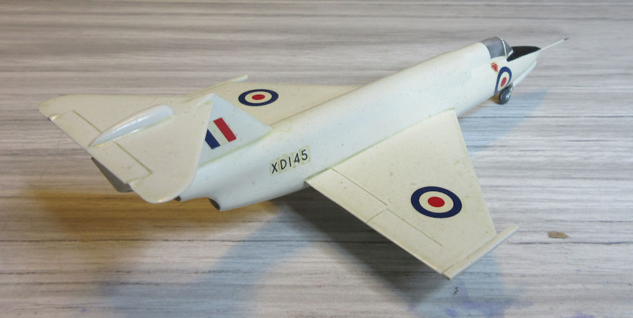 This is a reconstruction I made in the 1980s of a kit that I bought in the 1960s of the experimental Saunders Roe SR.53 composite jet and rocket powered fighter. I bought this Airfix kit as it first appeared in a Series 1 plastic bag, a very basic kit that I improved in a couple of ways when I reconstructed it, but it is still very basic.