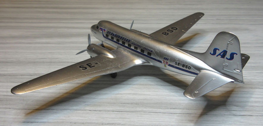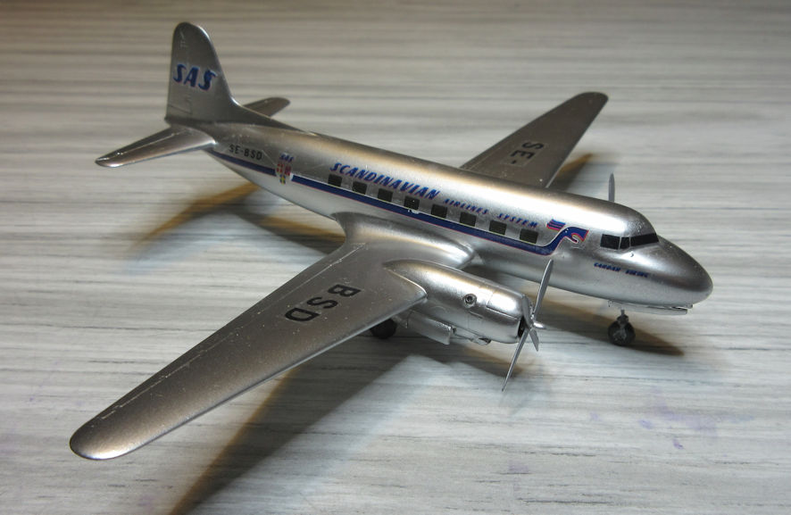 FRsin make an extensive range of resin and white metal airliners in 1/144, some of them more well known than others. I knew nothing about the SAAB 90 until FRsin released this kit and, of course, I had to acquire one. It is a fairly simple kit to put together but the propellers come in five tiny parts that my big fat fingers had trouble with so I used two propellers from my spares box instead. I would not call this one of my most successful models and this is mainly because of the decals which were very fragile and came with white base layers which seem a little too big for the livery decals that go over them. Due to the fragility of the decals I broke a couple of the white underlays and had to apply the livery decals without them, and you can hardly spot the difference. So if you’re making this spare yourself some trouble. The overall colour is Tamiya TS-83 which I recommend for this kind of finish.