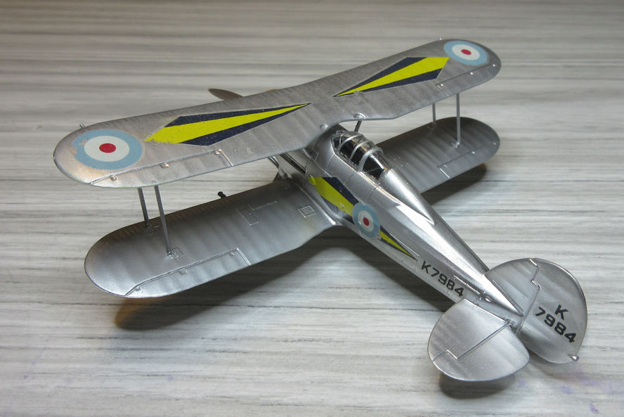 This Matchbox 1/72 Hawker Fury I was released in 1972 and I made it in 1976. The silver is the old fashioned Humbrol 11 which is a lot better then the new version, but probably also more injurious to one’s health. This kit has the serial number PK-1 so it was probably the first kit that Marchbox released and came, as was one of the kit’s selling points, in two different colours of plastic. Revell re-released this kit in about 2010. I see that AZmodel have also released a kit of the Fury but if it is anything like their Hawker Demon kit it might be easier to buy and upgrade the Revell version because I ended up tossing my AZmodel Demon kit in the bin and getting the old Airfix kit with some upgrade parts instead.