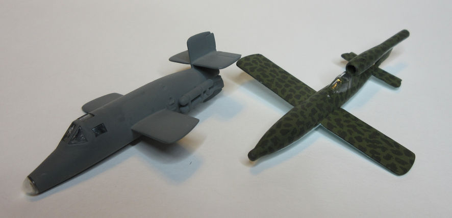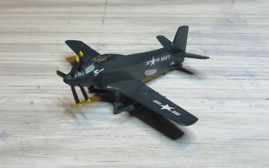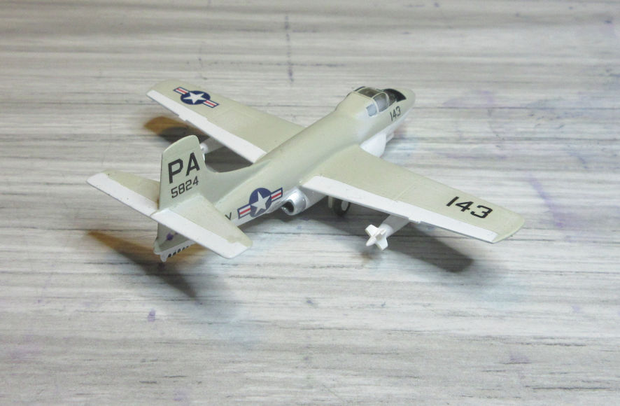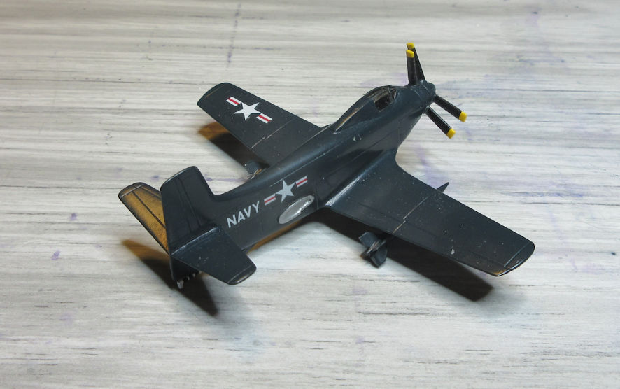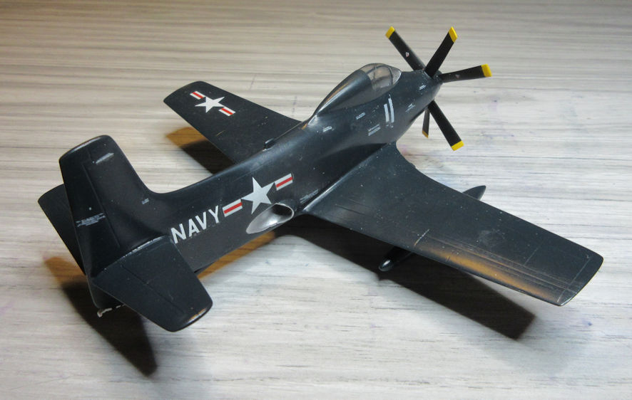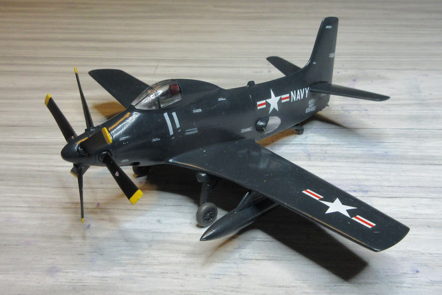 Douglas A2D-1. It is a bit weird making the same aircraft in two scales at the same time. This one was much easier to put together but it is also lacking a lot of detail.