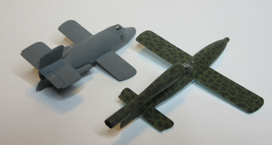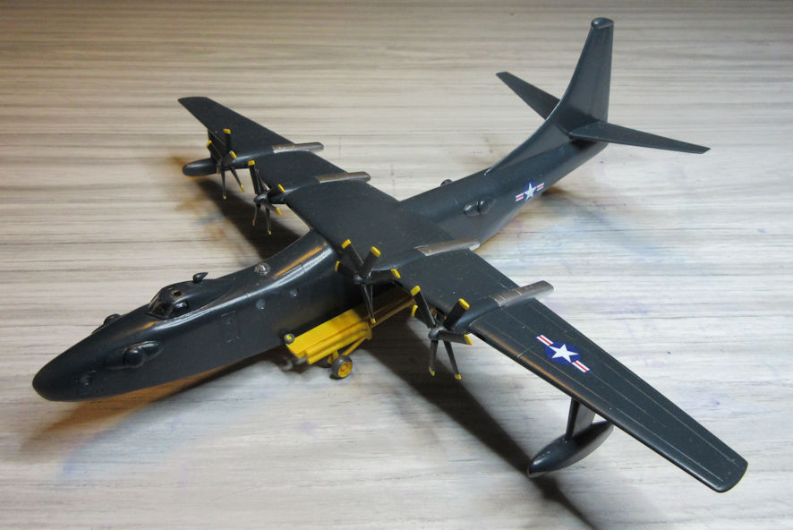 That period immediately after World War II was a period of transition from piston to jet powered aircraft and many weird and wonderful ideas were tried and then dropped out of favour. The A2D, another was the Convair XP5Y flying boat. It used the same turboprop engines as the A2D and the failure of that engine doomed both the A2D and the XP5Y to oblivion even though other factors contributed. Still, the big flying boat is a fine looking aircraft and it is a good thing that Aingrand offer the kit in resin in 1/144. This is a fairly simple kit to make so long as you proceed carefully, the most serious problems is that the propeller blades tend to fall off their spinners if you don’t look at them right and most of the ones here have been reattached using some thin craft wire. Once again the SMS Dark Sea Blue takes a prominent role in finishing this model and making it look so good.