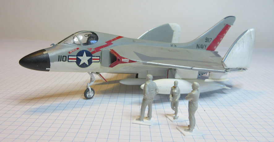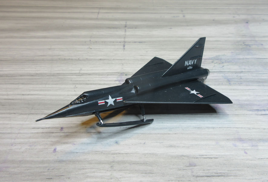 When I made this model of the Douglas F4D-1 from the Airfix 1/72 back in 1988 I was in the grip of Advanced Modellers Syndrome, hence all the moving control surfaces and folded wings. Note how this version of Light Gull Grey, which was probably Modelmaster enamels, is darker than the SMS Light Gull Grey on the A-7A.