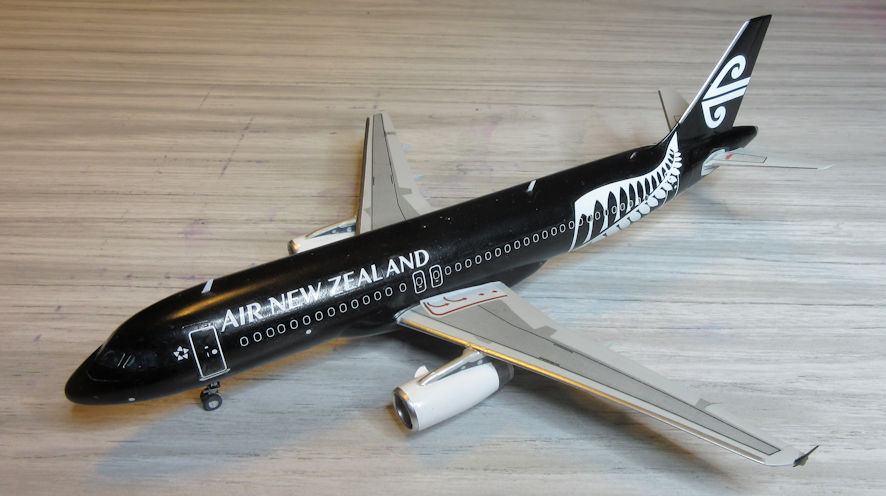 This month begins with a couple more Zvezda 1/144 Airbus A.320s that are a little unusual. Air New Zealand have painted their A.320s in a number of schemes over the years and this all-black one is one of the more common schemes. The decals come from the Russian company Ascensio but there are not enough white cabin window outline decals so you will need to buy two decal sets if you want to make this model. I think it was worth the additional expense.