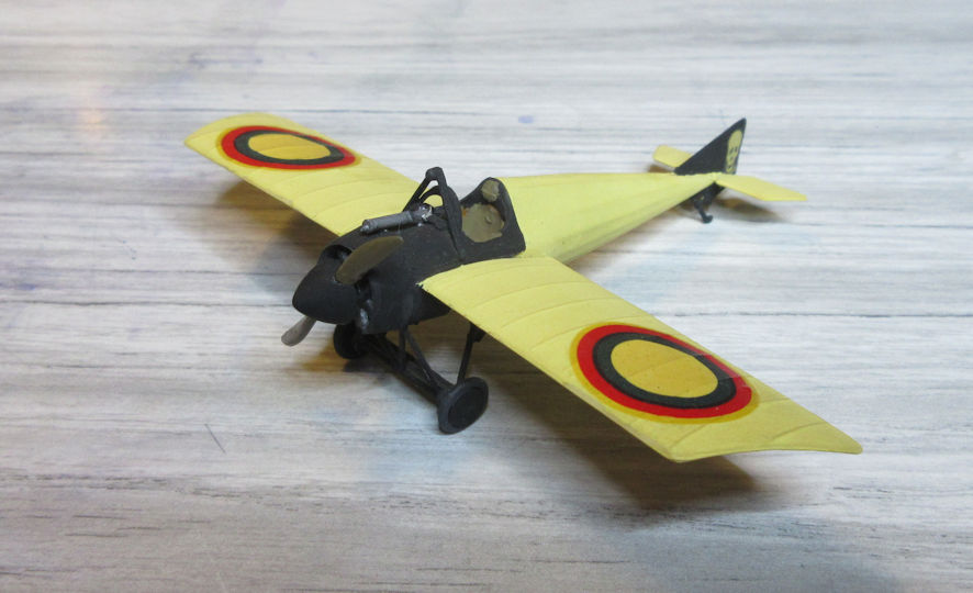 When I made this Revell 1/72 Morane N in 1975 the kit was already ten years old. It is fairly primitive by the standards of those days but really, apart from a decent cockpit, there’s not much that could be done to make this a more detailed kit. The only decals in the kit were for this Imperial Russian air force and the kit is so old that the white center of the roundels are now as yellow as the fabric colour of the rest of the model. There are more modern kits of the Morane N and one of these days I might get around to making one.