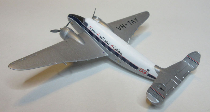 This Frsin 1/144 Lockheed 18 is one of their range of interesting airliner subjects that I always enjoy. The design of these kits is usually a little simplified but in this scale that is not a great problem and they can always be improved with a little scratch building if that is your inclination. Until I discovered that one of the decal options for this kit was Trans-Australia Airlines I did not know that airline had used these airliners but research shows me that two flew for the airline in north Queensland in 1953-53 for about a year. The kit offers the option of making both aircraft. The main airframe colour is Tamiya AS-12 and the fuselage top is Tamiya Pure White. In summary, a simple but delightful little model