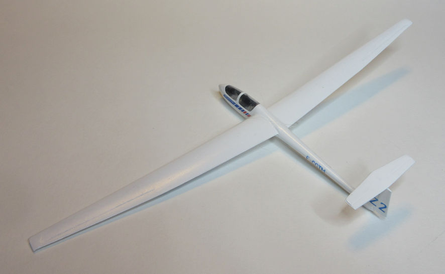 This Dujin 1/72 Centrair C201 is one of a few glider kits that the French kit maker Jean Pierre Dujin produced in his workshop and is one of several hundred kits of otherwise unkitted models that he made. His resin kits are not for everyone but I love them. This Centrair glider is generally a simple model to make but the cockpit detail was rather lacking so I had to build it up a bit since the large canopy is rather exposing. Apart from that, the model is Tamiya Pure White all over (yes, I do go through a lot of it) and the kit decals went on very nicely.