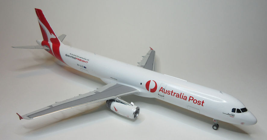 I was keen to include a Qantas Link A.320 in my set but decals for it are not yet available, so I was delighted to see that Ascensio (a Russian company) have produced decals for the Australia Post A.321 freighter flown by Qantas Freight. The freighter version is simple to make, simply fill in and smooth the fuselage windows and place a small stip of semi-round card in exactly the right place on the fuselage top to replicate the hinge for the large freight door in the fuselage side. Apart from that, making this kit is fairly routine but the result is rather spectacular.
