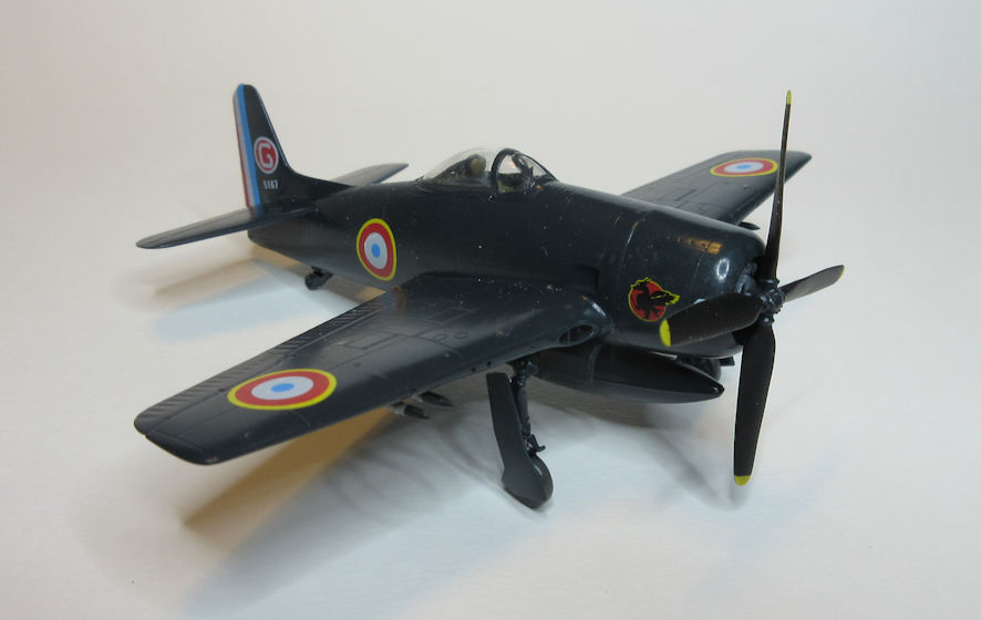 Earlier this year I wrote about modelling the Grumman F8F Bearcat and mentioned that a Hobby Boss kit of the F8F-1 was due any day. It has now arrived and it is an excellent though simplee kit of this lovely little aeroplane. Print Scale have published a decal set to go with it that includes decals for all the air forces which flew this aeroplane and I chose the Armee de l’Air version for this model.