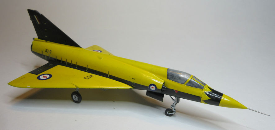 The RAAF acquired a few Dassault Mirage IIIDs to serve as trainers for the pilots of its Mirage IIIO fleet. It would have been challenging indeed to make this two seater from the old Frog kit so this model had to wait until I acquired the old short run High Planes Mirage IIID kit. The decals for it were made by Hawkeye Models. This is the livery in which this Mirage can today be seen at the South Australian Aviation Museum.