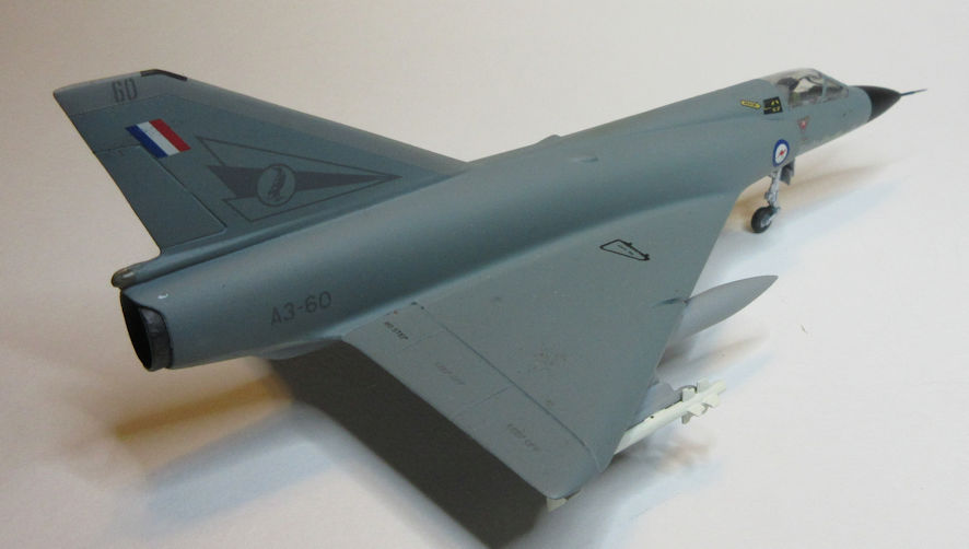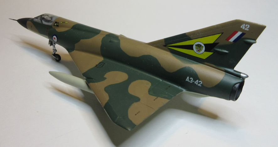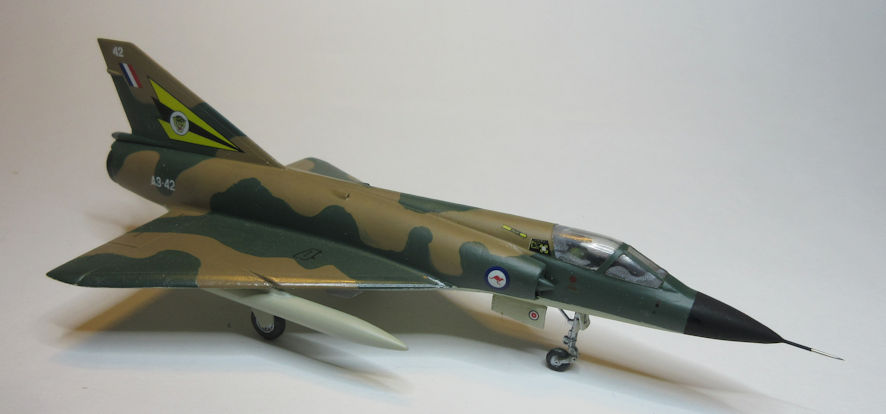 Construction followed the usual pattern; by now I was used to all the little quirks this kit has. The camouflage pattern is exactly the same as the standard grey and green Mirages with the earth brown replacing the grey. The end result looks good, and novel.