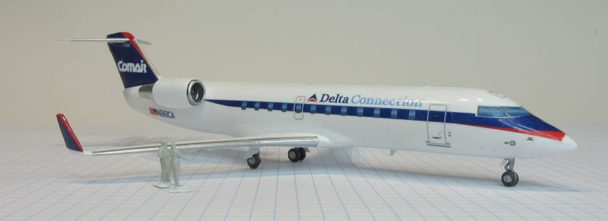 Let’s begin with one that turned out to be a mini disaster, the Welsh Models 1/144 Bombardier CRJ2000. There are quite a few problems, the wing dihedral for one, but the main one was self inflicted. The kit comes with two tail decals, and that goes with the over all white scheme of ASA and another for Conair which isn’t all over white. After I stuffed up the ASA decals I had to use the Conair ones, which would involve repainting a lot of the model in grey. After all the trouble this kit had previously given it was either take it as it turned out or throw it in the bin. I seem to have thrown out quite a few kits these past few months so I kept this one instead. If you squint you might not notice the problem. Anyhow, this is not a bad Welsh Models kit but, as with most of them, they need some careful and patient work.