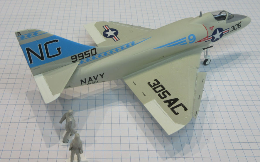 The Model Geeks podcast is having a group build of the Douglas A-4 and since the Geeks are all US Navy guys, and I like US Navy, I decided to give it a go. To add a degree of difficulty I decided to convert the Airfix A-4B kit into the earlier A4D-1 (A-4A) which involved a few changes. The most noticeable are removal of the refueling probe and filling in the fillets on the rudder but there are a few more subtle ones. All did not turn out as expected and since everyone says that the slats are deployed when an A-4 is on the ground I did that too. Unfortunately the grey on the slats and on the wings did not turn out to be the same shade and the deployed slats makes it look as though the aeroplane is broken. Even so, what’s not to like about an early model A-4, especially ones from the period when the US Navy painted all their aircraft in such colourful liveries.
