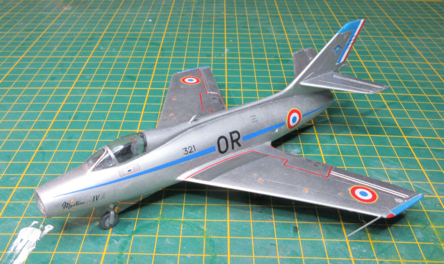 The Interesting Modelling Company held a group build for Matchbox May and I started on the old Matchbox Dassault Mystere IVA. It’s not a bad kit – for an old Matchbox kit – but I decided to make some improvements and fill in some of the more obvious trench work and, what with one thing and another, I missed the end of May deadline by a month. Despite this, it doesn’t look too bad dressed up in some Xtreme Metal Aluminum and Model Art decals.