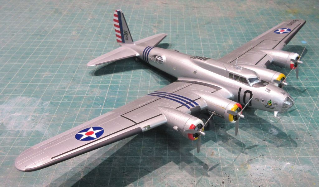 Late model B-17s were definitely more efficient war machines, but not half as attractive as the early models, particularly before their lines were spoiled by camouflage paint. I made this model in 2008 and I wish I could remember what paint I used to get that lovely metallic finish.