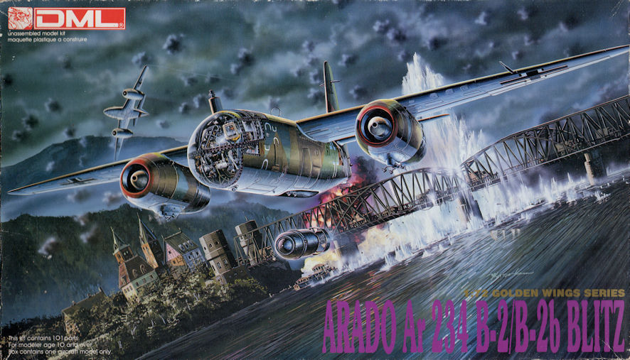 This model represents an Arado Ar234B-2 of III/KG 76 which was flown in attacks on the Ludendorf bridge at Remagen in early March 1945. It used the Dragon kit and Aeromaster decals.