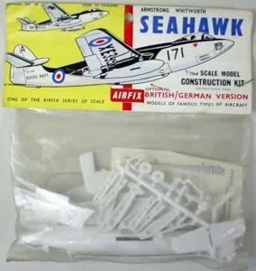 While working on this model my mind returned to 1959 or thereabouts when I fossicked through the bin of bagged Aifrix kits and chose their offering of the Sea Hawk. It was wonderful and, having discovered that you could paint scale model kits, I put some grey paint over the upper surfaces and was mightily pleased with the end result.