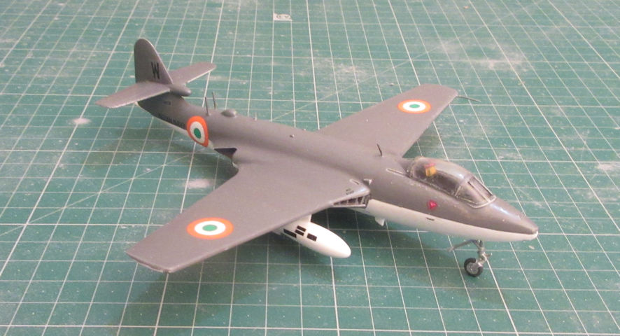 More recently I was overtaken with the urge to make it. The kit is a breeze to assemble; all the parts fit, they are finely moulded and the end result is pleasing. There are only two things less than perfect. One is the cockpit canopy which does not merge as well as it should with the fuselage and the decal sheet which gives options for German and Indian aircraft, but the white is not as dense as it should be so you can seen the underlying colours through it, which is not a good look. Still, I had an aftermarket sheet with some Indian markings for Sea Hawks so that problem was solved.
