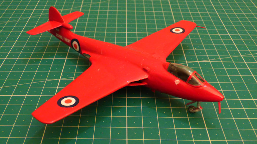 To draw attention away from the kit’s many faults I decided to paint it up as a Sea Hawk FB.3 that flew in the Red Devils aerobatic team of 1957, nice glossy read, so people wouldn’t notice what I’d not done. The only advantage that this kit has over the Trumpeter kit is that the cockpit canopy is a better fit.