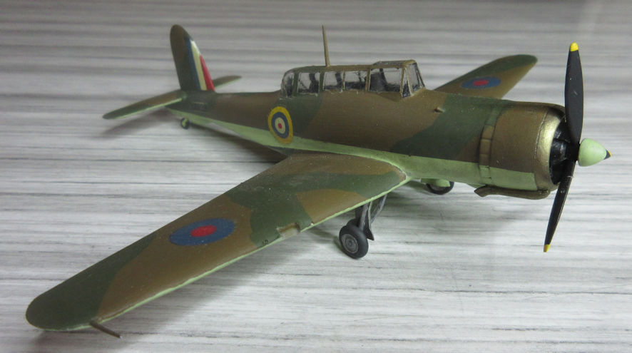 Then it came time for the painting and colours. If I’d had my airbrush running I would have been tempted to paint the model in the pre-war aluminium scheme but since this had to be a hand painted job I had to go with camouflage colours that were apparently applied to Skuas around 1940. The only useful decals I could find were the ones that came with the kit which are more than basic and so old that they required a lot of effort to go onto the model at all – and then started to peel off as soon as my back was turned. (They put a MA rating on my room at this point). I’m not sure that the colours the instructions suggest come anywhere near being an accurate representation of what the real aeroplane would have looked like but they are the best I could find to go with the decals.