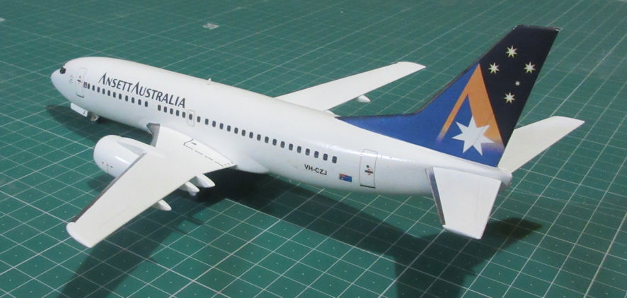 Next came the 737-300, -400 and -500 series which are called ‘Classic’ these days. They all have the same new wings but different fuselage lengths which means that they have different payload and range capacities, which doesn’t mean much when you’re making models of them but does effect the plumage you can give them because airlines buy them for their payload and range capacities. We’ve had -300s and -400s in Australia, as far as I can remember Ansett flew both versions and Qantas is still flying them on some routes, particularly to places like Canberra, which is the reason I’ve become so familiar with their interiors this past year and I don’t find them particularly comfortable.