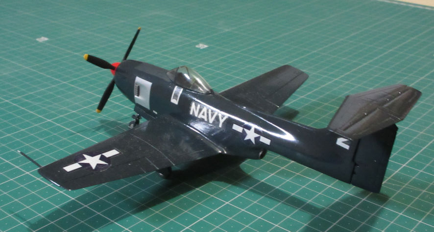 I have several weaknesses. One is French aviation, another is that period in the history of the US Navy when their aircraft were all-over deep sea blue. (There are others, but since this is a family newsletter…) For about ten years the US Navy’s aircraft flew in that deep blue shade, a period extending from the last year of the Great Patriotic War to the beginning of the great arms build up of the Cold War. It was a period of great innovation and experimentation and a period that includes most of the aeroplanes involved in the war through until the almost equally attractive period when US Navy aircraft wore some of the most extravagant scheme ever flown. The other great attraction about the deep sea blue period was that the navy was totally indiscriminate about where it sprayed that colour so just about every part of the aeroplane including the wheel wells go the blue treatment (I was overjoyed to see a McDonnell FH in the National Air & Space Museum in Washington, partly because it confirmed this fact despite other things that I had read and heard. If it’s good enough for that museum it’s good enough for me.) This means that painting aircraft from this period is easy work.