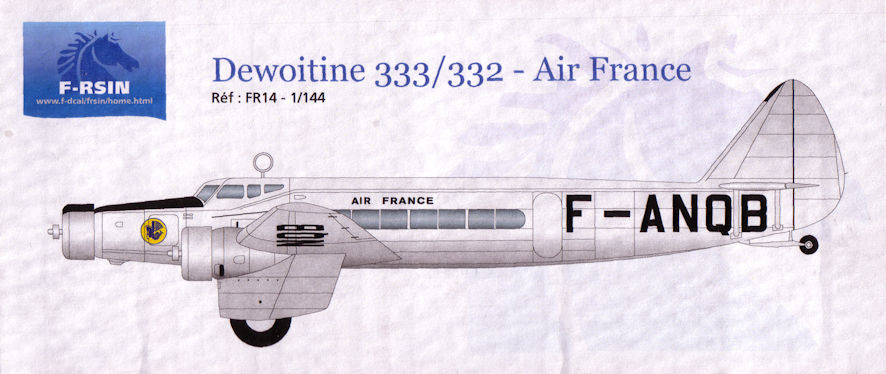 Air France was established by merging several existing airlines. It took over development of international air services and ordered three Dewoitine 333s, slightly improved and strengthened versions of the 332, for its Casablanca-Dakar services. They were of all-metal construction with a comfortable cabin for eight passengers, well insulated, ventilated and sound-proofed. The first 333, F-AKHA, Antares, flew in January 1935, and entered service in July 1936 after extensive route testing. The two others were F-ANQB, Cassiopée, and F-ANQA, Altair, which entered service in 1937. The Antares was lost in a flight off Morocco in October 1937 and the other two flew the Toulouse-Dakar service during 1937. In December 1937 both 333s crossed the South Atlantic from Dakar to Native and flew air services based in Rio de Janeiro for several years, until they were sold to the Argentinian air force.