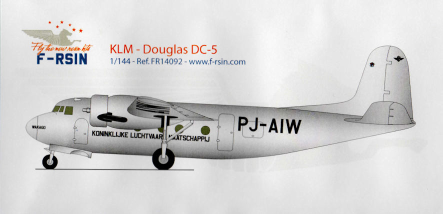 This is a simple resin kit with four basic parts, a few smaller resin parts and white metal undercarriage. It comes with a decal set that allows you to make all the DC-5s that flew with KNILM.