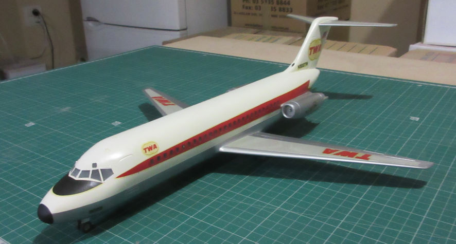 This an ancient Aurora kit dates from 1968 which is not long after the DC-9s entered service. By the time it reached me it was in an ancient time worn box with the fuselage halves joined together but not much else done to it. I was a bit sceptical about it until I measured it and found it comes out at 1/73 or 1/74 scale, which is close enough for me.