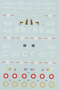 This left me with the Monogram kit which, Scalemates tells me, is the 1975 boxing of this kit. I made it when it was first released and then again more recently as a F8F-1 with South Vietnam air force markings, but it didn’t come out so well so it’s not one of my favourite models. There are a lot of reviews of this Monogram kit and some of them point out the flaws with this kit, mainly little problems with accuracy. Apparently this kit is something of a mixture of -1s and -2s and one suggestion seemed to be that the tail is a little too short for a -2. What all the reviews seem to agree on is that this is a pretty decent kit for its age and probably still the best F8F kit around despite being fifty years old. Most modellers seem to be quite happy to make it straight out of the box and I was too. There are suggestions that, at one time or another, there were some aftermarket parts for it to improve the cockpit and the wheel wells, but I couldn’t find any of them in any of the usual places on the internet. I did have a couple of after market decal sets for the F8F-2 with marking for US Navy and French Aeronavale aircraft, which was a blessing because the fifty year old decal sheet was looking a little decrepit.