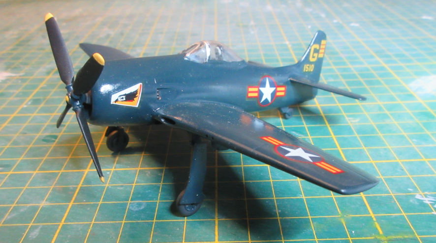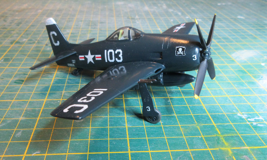 Many years previously I’d acquired the SuperScale decal sheet 72-643 which has decals for four F8F-2; one US Marines, two US Navy and one Aeronavale. Ordinarily I would have used the Aeronavale decals because one of my other modelling interest is French aviation and who could resist the combination of a US Navy aeroplane in French markings. However, since there is the promise of the nice new Hobby Boss F8F-2 to come I saved those decals for it and used some of the US Navy ones instead. Even so, I’m mighty pleased with the resulting model.