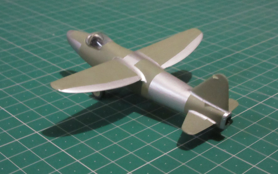 I always find it tricky getting the wings level on models of aeroplanes with a narrow undercarriage track, in 1/72 scale even a fraction of a millimetre difference between the legs makes the finished model look wonky. And this gets even more difficult on a limited run kit like this which has no positive location for the undercarriage legs. To overcome the problem I made a little jig so the wingtips were precisely the same height and then trial fitted the undercarriage legs to get the angle looking right. I had to drop the wingtips about 1.5 mm from my original estimate to get it right but when I was satisfied everything was right I popped the legs on with super glue. I’m not sure that they should jut out from the side of the fuselage the way they do on the model but it was too late to do anything about that by the time the thought dawned on me. There is potential for confusion too, the He178 had retractable undercarriage but it was fixed down when the aeroplane flew, the brass fret includes lower undercarriage doors that don’t seem to have a home while the instructions are quite vague about what to do with them, so I left them off on the model.
