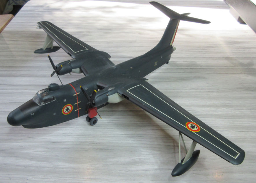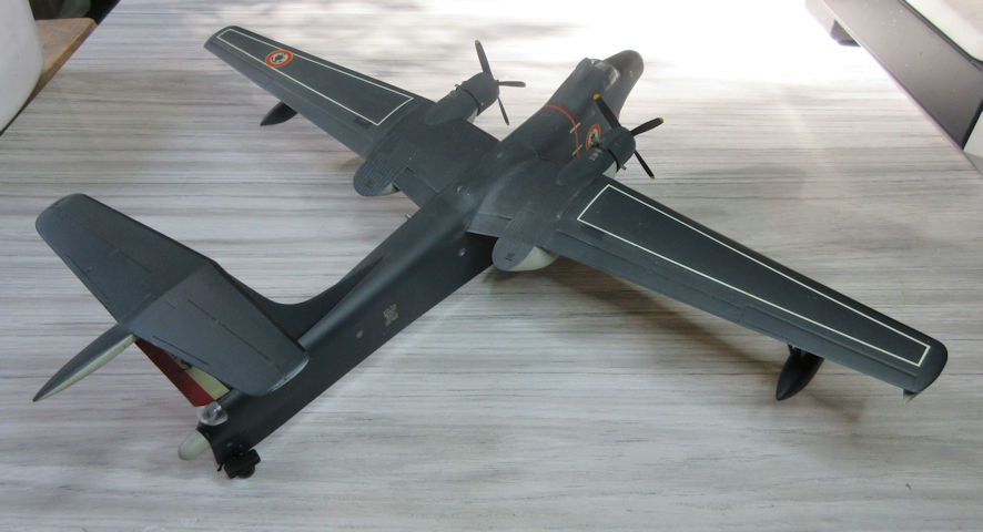 Fortunately the decal sheet does offer the option of an Aeronavale P5M so I could at least make this kit into something more interesting than the routine US Navy version. In some ways it might have been safer to make a US Navy version because there are enough photographs around to help in getting the colours accurate. The only photographs of an Aeronavale P5M I could find showed it with an upper surface painted white and numbers and insignia painted on the fuselage. It would not have been impossible to improvise them on this model but, since I couldn’t find out whether the white extended to the wings (unlikely but possible), I decided it was safer to follow the kit instructions. Doing it that way means there is nothing on this model to distinguish it from any of the ten P5Ms that went to Dakar, but perhaps that is the way they arrived there. The other advantage of using this scheme was that it allowed me to make this model in my favourite modelling colour and the result is a large hulking blue model.