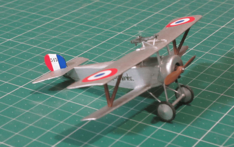 The kit comes with a choice of five markings, four Nieuport 11s and a Nieuport 16. The first four are all silver so that makes life very easy while the Nieuport 16 is camouflaged and equipped with rockets mounted on the wing struts for shooting down balloons. The Nieuport 16 had a more powerful engine so I don’t know if something should be done to represent that if you were to go for the 16, but since I decided to make a nice French Nieuport 11 I didn’t have to worry about that.