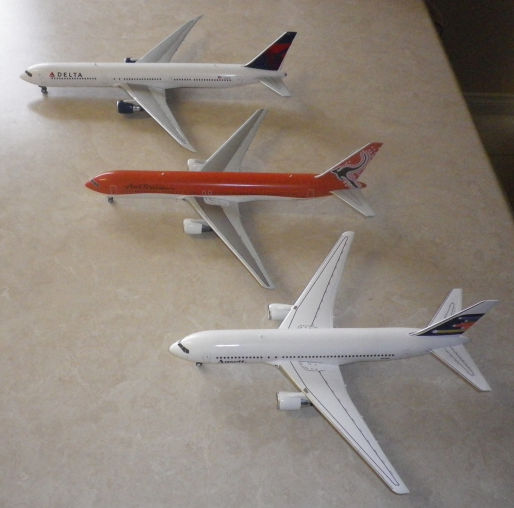 Overall, the three 767s turned out fairly well, and the 777s were not too much of a problem. The 787 is being made straight out of the box with improved engines and aftermarket decals, but then I have to turn back to make the Minicraft 757s, which are a whole new world of hurt.
