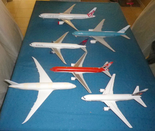 The first part of the planning process is strategy. In a burst of logic that now escapes me I decided to make the 767s first, then the 777s, then the new 787, and then to work my way back through the numbers to the 757 and 747s to the 727, 717, 720, 707 and beyond. Next comes tactics which requires a lot of reconnaissance, also known as research. (But nothing too detailed, I don’t mind doing research in depth but I prefer people to pay me for it.) The two most useful sources of research are Wikipedia, which has as much detail as I need about size, engines and other details, and Airliners.com which is a wonderful source of photographs of just about any airliner you can imagine. Using the photo index you can find photos of most airliners sorted by sub-variant and operator. I don’t know that I wrote the result of all this planning on a piece of paper but working it all out did occupy a lot of my time.
