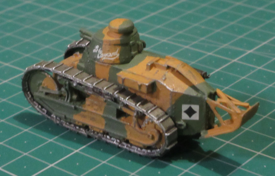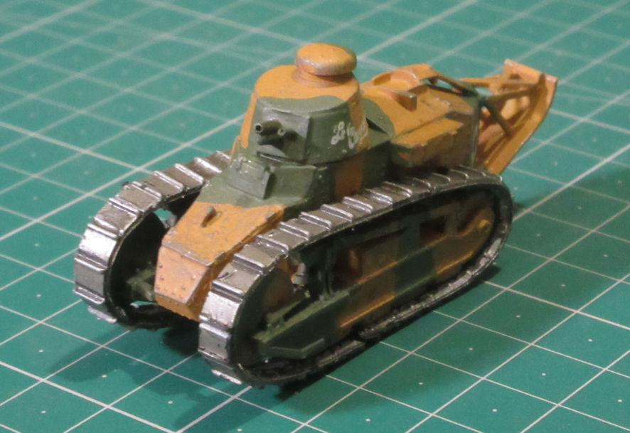 The kit offers options of 14 different FTs equipped with the 37mm gun. Unfortunately my mastery of Polish (the language of the kit manufacturer) is very ordinary and so I couldn’t make anything but the most rudimentary sense of what those options are. There was one nice version with the motto ‘Passe par tout’ (‘Cutting through all’ more or less) but it is dated 1920 and probably served in Poland but since I wanted a Western Front version I chose a simpler option. The two colour camouflage went on by band and I painted the tracks in several colours of Metalizer, it was all very easy really. The end result looks very pretty in a tankish sort of way. I see that Revel makes a nice little LeClerc and I was tempted for a moment or two …