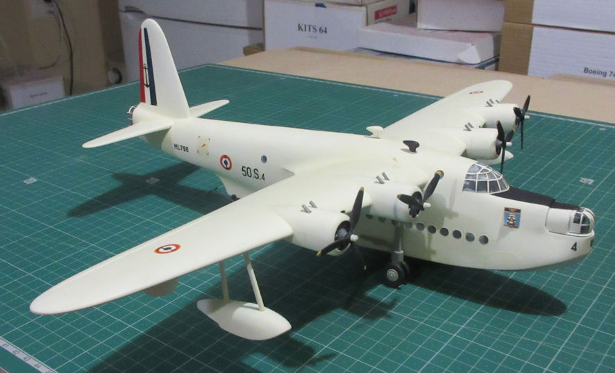 What happened to change my attitude was when I needed to order to airliner decals from overseas and I needed to buy something else to make up my order to the limit the shop had. While glancing through more lists of decal sheets I noticed one that offered a range of aeroplanes of other nations that also flew in French colours – it looked interesting and it pushed my purchase to just up to the limit and so I ordered it. When the sheet arrived it offered all kinds of enticing possibilities, a black Junkers Ju188, a Supermarine Walrus, an Anson, a Dornier and, most interesting of all, a Sunderland. At last here was something to make making a Sunderland worthwhile, and all the better because, apart from a couple of little bits and pieces, it was all over white from one wing-tip to the other.