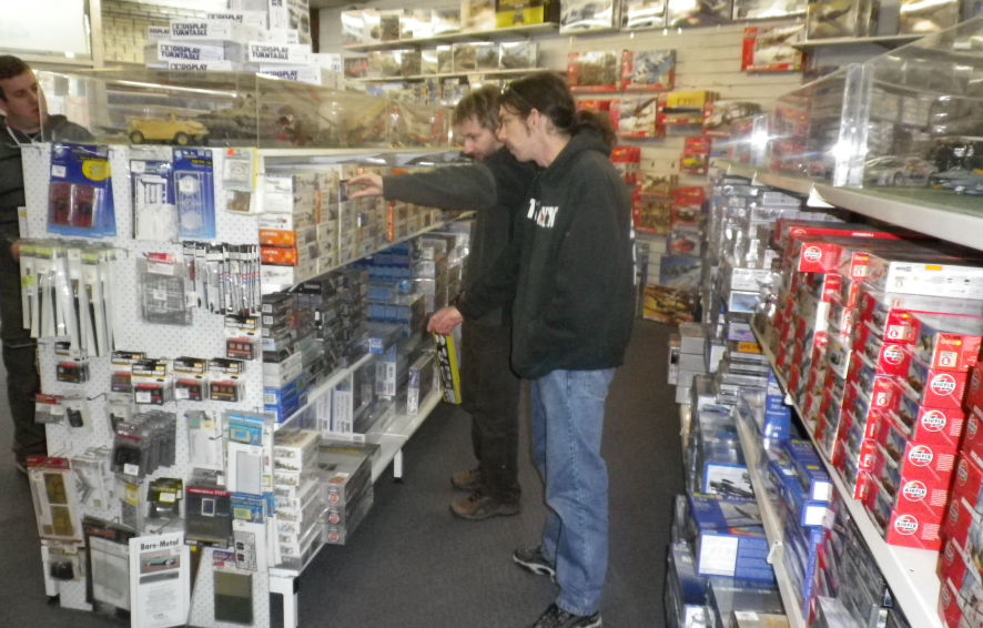 The rest of the day went by in something of a blur. Things calmed down around lunch time but the public was still coming in strongly right up until the end. At some stage I wandered out to take the air and saw the car park was full with a couple of cars cruising around looking for a spot. True, it is not one of the world’s largest car parks, but it was good to think they’d all turned up just to take in our display. The publicity and the signs had done their job. I don’t know if this occurred to anyone else, but it occurred to me that there were a fair number of young men with young women in tow (occasionally with children), most of them leaving with a few kits under arm. I wonder if our display day has become a regular event for these people, showing that our hobby is respectable and providing an excuse to acquire a few kits at good prices at the same time.