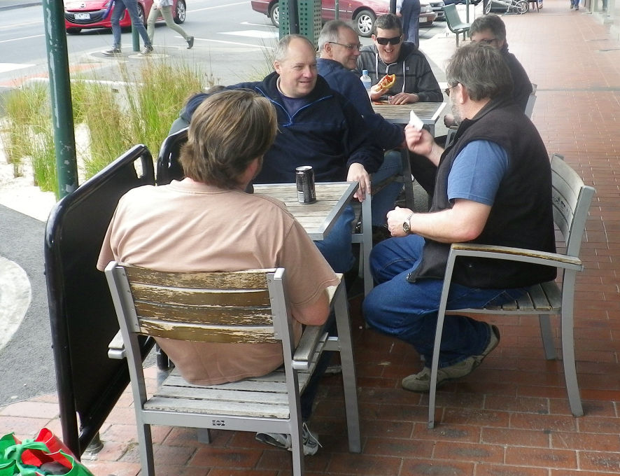The bus trip itself was interesting. Master Wayne has already mentioned the strange arrangement of suspension in the back of the bus which means that I now have to have an extra cushion or two on my chair so I can reach the keyboard comfortably. The cockpit crew arrangements was also interesting with Doctors Pilbeam and Zimmer sitting up the front, chatting away about things that were probably well beyond the comprehension of us mere mortals. No wonder then, that the drive to Moonee Ponds Models was so circuitous, probably following the abstruse logic being discussed in the cockpit. After that Master Steve moved into the cockpit as navigator and we hurtled with unerring accuracy towards our following destinations. Once again, and to our very great disappointment I must add, there was no microphone and amplifier fitted to the bus so that we in the rear could hear the driver’s commentary on other drivers. Only the occasional exclamation of ‘knobhead’ reached us in the back, depriving us of one of the prime reasons for making the bus trip in the first place. This is something which definitely must be rectified for any future trips. The final interesting aspect of the trip occurred only a couple of minutes before we rolled to a stop back in Ballarat. Dr Zim broke out into the well known Monty Python ‘Philosopher’s Song’ which names almost all of the world’s most famous philosophers. Not that I believe for a minute that Dr Z has more than a nodding acquaintance with their work because he is, after all, an engineer. It is a well known fact that all engineers embarking upon their university courses have to take ‘Drinking Songs’ 101 as a compulsory course and that ‘Advanced Drinking Songs’ is required for all engineering students progressing to higher degrees.