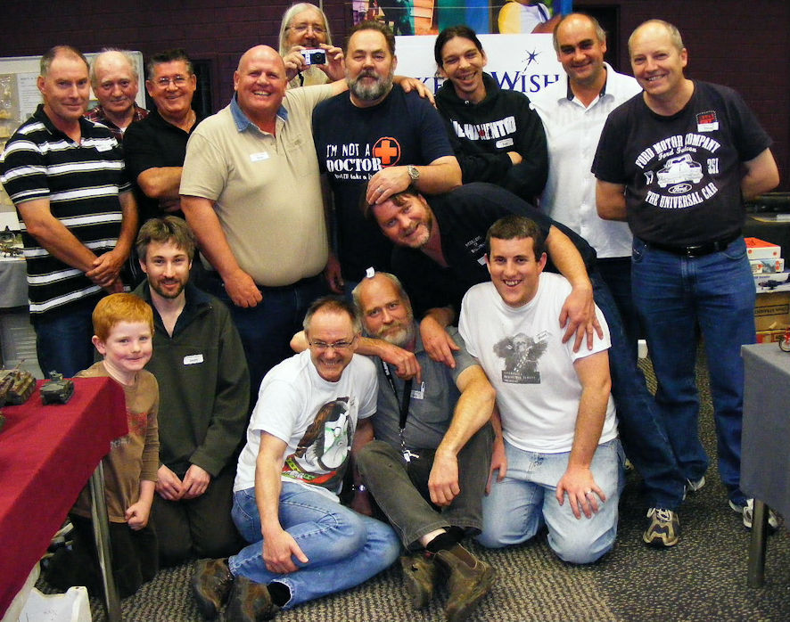 The crowd diminished and by the time the last raffle winner was drawn our visitors had disappeared back into the real world. Before it was all over, and perhaps as a way of finishing the day, we crowded together for the by now traditional group photograph, taken by Frank Morgan. Then there was nothing further to do but say goodbye to the last of our visiting friends and pack up. The models disappeared first and then the table cloths and the tables until, with little fuss, the room had been returned to the state in which we had found it, as though we had never been there. What we were left with was great memories of the day and a feeling that we had done a good job.
