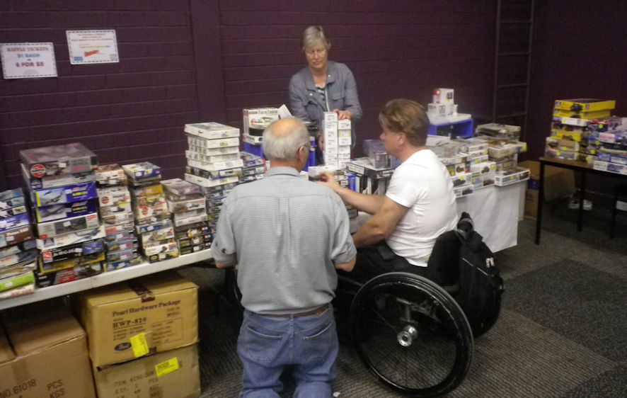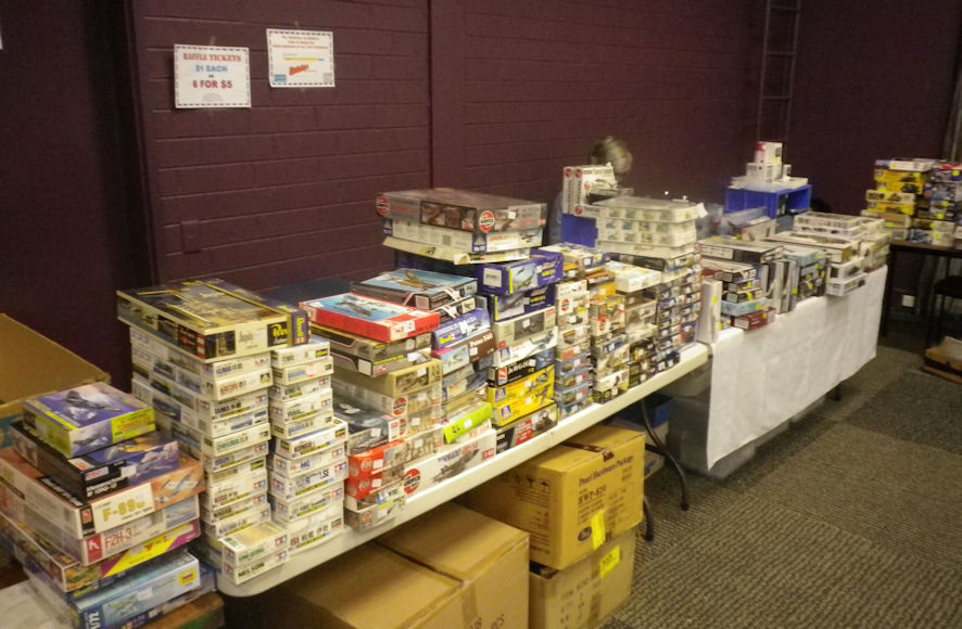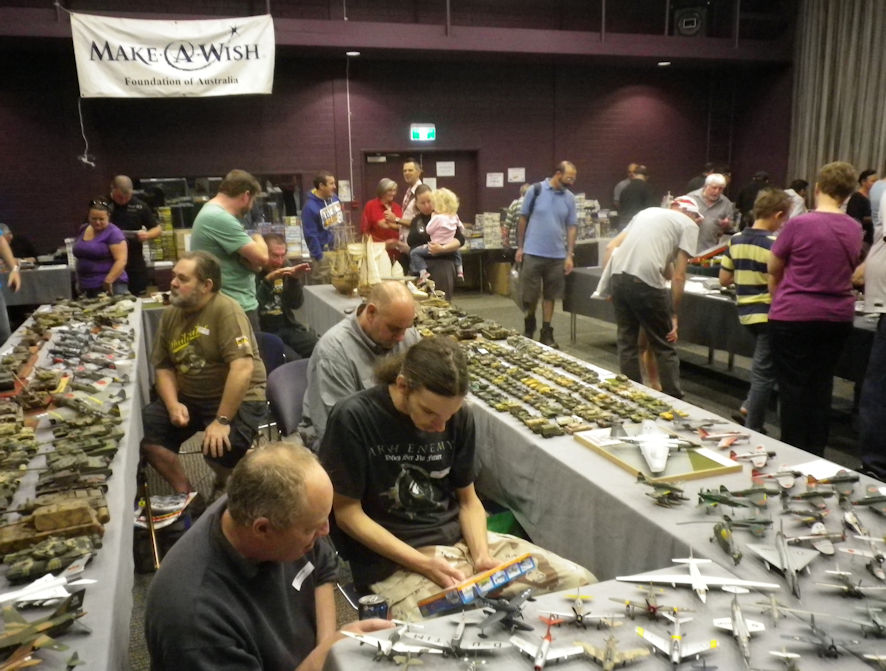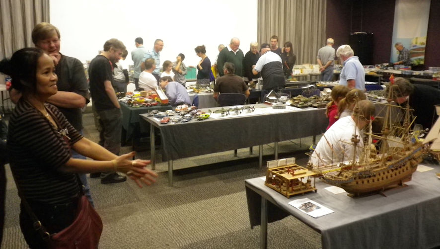 When the doors were thrown open at 1000hrs the crowd surged in. As usual there are some who see something they like and buy it immediately, and there are others who come back later and demand to know where the kits they wanted to buy had gone. Machiavelli lectured them on their inability to seize the opportunities that came their way and Sartre smiled at them and gave them his card. I observed that most people have firm ideas about what they want and scan the piles of kits quickly and expertly, moving on to the next table if they see nothing that interested them. There was little of the window shopping I had seen in earlier years. Even kits offered at amusingly low prices do not attract buyers if they are not on their mental shopping lists. I am the same, it seems. I found a vacform kit of a Fairey IIID (which can easily be made into a replica of the first aeroplane to circumnavigate Australia) on the table next to us but, despite several excisions around the tables, nothing else took my fancy.