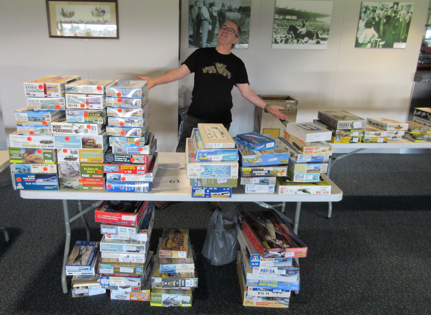 At the appointed time the doors were flung open and the crowd sludged in. In previous years the crowd had surged in, but this year the numbers seemed less, or perhaps they were less desperate than previously because they knew that the days of really cheap bargains had long passed. As usual, the crowd circulates in a clockwise direction, which meant that it took some time for them to circulate around to our table. Sales seemed less enthusiastic than in previous years but, on the other hand, there were plenty of friends and nodding acquaintances from previous modelling shows to talk to to pass the time. And when it was time to pack up and head off, there were a lot less kits than we=d started with. Master Wayne had no kits at all, having found a heartless huckster who took his remaining kits off his hands at what could only be called “carpetbagger” prices.