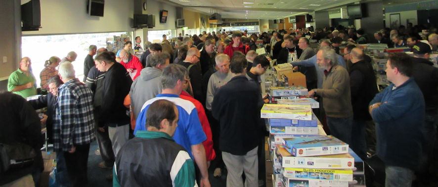Thus entertained we cruised down to Melbourne in the Statesperson. We reckoned that the trip would take about two hours, so we aimed to arrive at Sandown about fifteen minutes after the queue of vendors had trundled their way into the hall. The trip went more smoothly and quickly than we had expected so we still ended up standing in the queue, but at the head of it for a change. Once inside, it didn=t take long to set up our piles of kits and then we took turns in wandering around looking at what other vendors of kits had to offer, and at what prices. Some vendors were modest in their offerings while others had great wall of kits carefully stacked so high that it was impossible to see the person standing behind them. I had a couple of little kits on my shopping list but not one of them was to be found in all the thousands of kits, which was a disappointment. On the other hand, there were a few kits that I hadn=t expected to buy, but a man can never have too many Airbus A.320 or BAC Lightning kits.