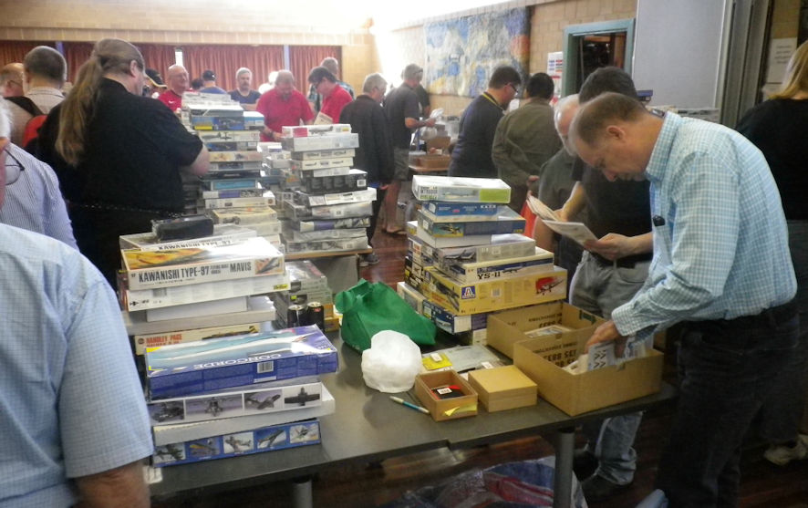 When the doors were opened in previous years to the paying public they had come crashing in like a tiday wave. This time it was like a trickle, perhaps the economic conditions of the time means that folks have less spare cash, or something like that. Even so, as time passed there were enough people to keep me busy though I seemed to spend more time talking to people than taking their money. There was one modeller who relieved me of a Mach 2 kit and told me that he didn’t see what people were on about when they whinged about Mach 2. He promised that if he made it up to our Display Day he would bring along the Mach 2 model he had made to show what could be done. (In fact, quite a few people mentioned that they would see me at our Display so we must be making an impression on the modelling community.) I also had a good time talking with the modeller who also raided the pile of Revell airliners, and wondered why there weren’t any A.320s there. I didn’t tell him they were all sitting under my table.