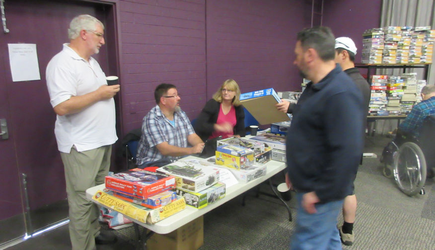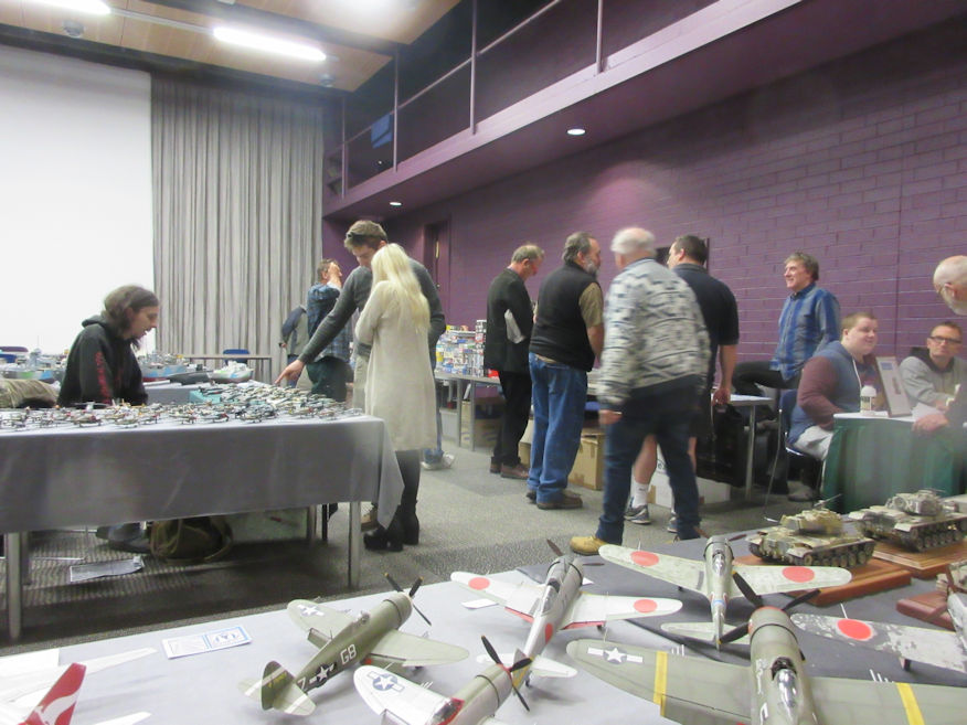 Then, around 1000 hours the doors are thrown open and the great unwashed (and I mean this literally in many cases) stream in. It seemed to us that this year there were more of them than last year and that more of them seem to have picked up the washing habit too. They all mill around and, over the next hour and a half, we gradually reduce the size of the pile of kits on our table. Generally the selling takes place with some genial banter which enlivens the morning. Armed with our keen sociological awareness we notice that the buying and selling takes place in three phases. In the first phase the great unwashed are keen to grab kits that are on their ‘must buy’ list or look to be good bargains. In the second phase they become more discerning and inspect the piles of kits in the hope of finding an unexpected treasure that that the less discerning had missed. Then there is the third phase in which those who still have money in their pockets drift around like tumbleweed, listlessly trying to find something to spend that money on. When the event reaches that phase there is little to be gained in the way of lively banter or in selling much, so it is time to pack up and move on. Besides, there’s no point in hanging around upstairs when there is Expo downstairs calling us.