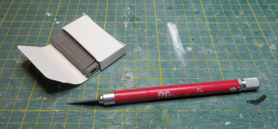 When it comes to the workbench and what’s in my tool box the most handy item is my trusty modelling knife and the box of blades close by. For many years I used the trusty old snap-off blade knife but, wanting something with a bit more precision I finally gave in and bought a simple handle into which went No.11 blades. Over the years I’ve tried other handles and other kinds of blades but I always revert to my original love, something that holds the No 11 blade. It’s a good tool for most cutting jobs but if I need something more specilaized, a smaller blade or a curved one, I can always find something in one of the other knives I’ve tried over the years and then usually forgotten about. The question with this tool is not what can do you do with it, the question is what can’t you do with it.