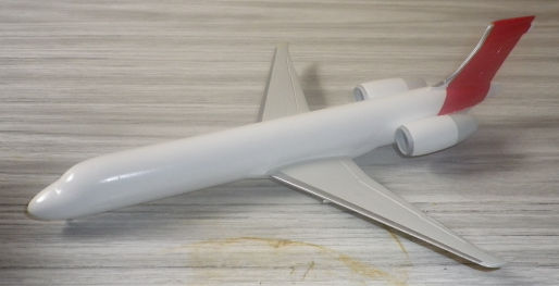 Having all the component parts that I thought necessary to make a Boeing 717 out of a Minicraft MD-80 something, I went to the Wikipedia entry on the 717 to use as my guide. This entry is rather long and complicated and follows the history of the development of the MD-95 which became the 717. This history goes back a couple of decades and goes through a number of iterations as the wings were redesigned and fuselage stretched and shortened depending on the thinking about what capacity airliner was most likely to sell well at that time. So I followed this story meticulously, noting when design changes took place and expecting to be able to create an accurate 717 by following all the changes in the design down the years. ‘Ah, so, if the wingspan was x in 1987 then the additional span they settled on in 1989 was now x + y.’ ‘And when they decided to reduce the wingspan in 1992 that means the new wingspan was x + y – z’. And on I went until the design seemed settled, and that was the dimensions I settled on. So I went ahead and made the model based on these calculations. This is why this little segment is called ‘Masochist Corner’.