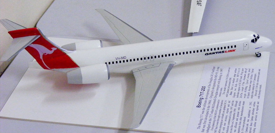 What I didn’t notice was a short paragraph over the page where they said something like, ‘Then they threw out all that planning and settled on an airliner that was basically a DC-9-30 with new engines and tail.’ After all the effort I went to with the intention of making the perfect Boeing 717, what I ended up with was what they planned to build before they decided to go back to basics again. Arrrgh? Fortunately I have a spare DC-9-30 in my Treasure so, one of these days, I’ll cut the tail off the pretend 717 and stick it on the back of the DC-9 to make a real 717. When I can work up the enthusiasm, that is.